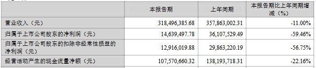 2025年1-3月,公司实现营业收入3.18亿元,同比下降11.00%;归属于上市公司股东的净利润为1,463.95万元,同比下降59.46%;归属于上市公司股东的扣除非经常性损益的净利润为1,291.60万元,同比下降56.75%;经营活动产生的现金流量净额为1.08亿元,同比下降22.16%。