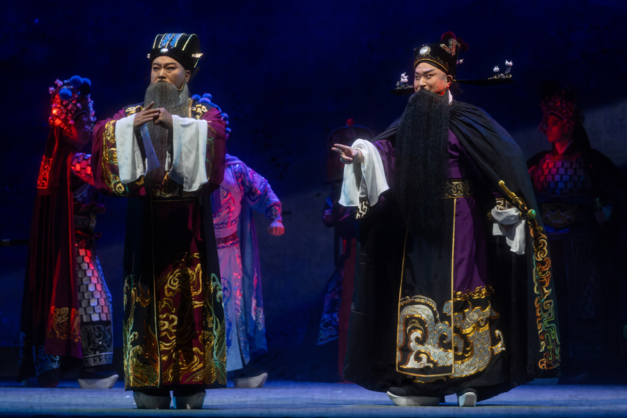 在《满庭芳》中,这一理念得到充分体现:青年演员赵悦勇挑大梁,饰演满庭芳,高挺、王俊杰联袂主演,更有七位“一级演员”甘当绿叶,携手呈现老、中、青三代同台的动人画面。整个剧组潜心创排五十余天,国庆中秋双节无休,从晨曦至深夜,反复打磨每一处表演、每一句唱腔,将家国情怀熔铸于舞台的每个瞬间。